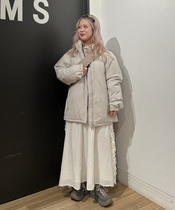 ストリートからアウトドア、タウンユースまで幅広く対応。ボリュームのあるアウターながら、ワイドパンツやカーゴパンツはもちろん、細身のボトムスと合わせてもバランス良くまとまります。フーディーやニットをインしてももたつかず、レイヤードスタイルも自在に楽しめます。