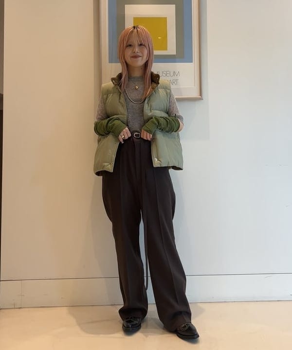 ポイント: センタープリーツが効いていて、綺麗見えするシルエット。ワイド幅なのでハンサムな印象に。