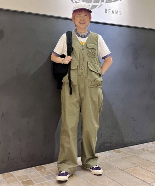 <BEAMS BOY(ビームスボーイ)〉定番アイテムのハンティングベストをオールインワンで表現した1着。元々ベストについていた少し低めのポケット位置を、あえてそのままに伸ばして配置。背中のポケットにはマチを付けて、更にボリューム感をプラスしたところがポイントです。生地はカジュアル感を抑えて全体のバランスが綺麗になるよう工夫。ノースリーブの仕様なので幅広いシーズンで楽しんでいただけるひと品です。