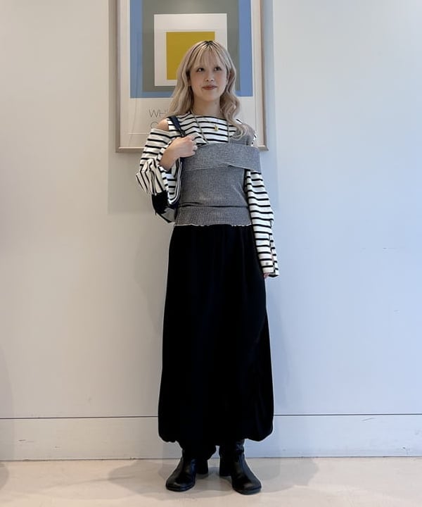 1枚でサマになる主役級のトップスなので、スラックスやワイドパンツと合わせたシンプルかつ洗練された着こなしがおすすめ。肩の明きがアクセントになり、ボーターTシャツの定番スタイルを鮮度高くアップデートしてくれます。